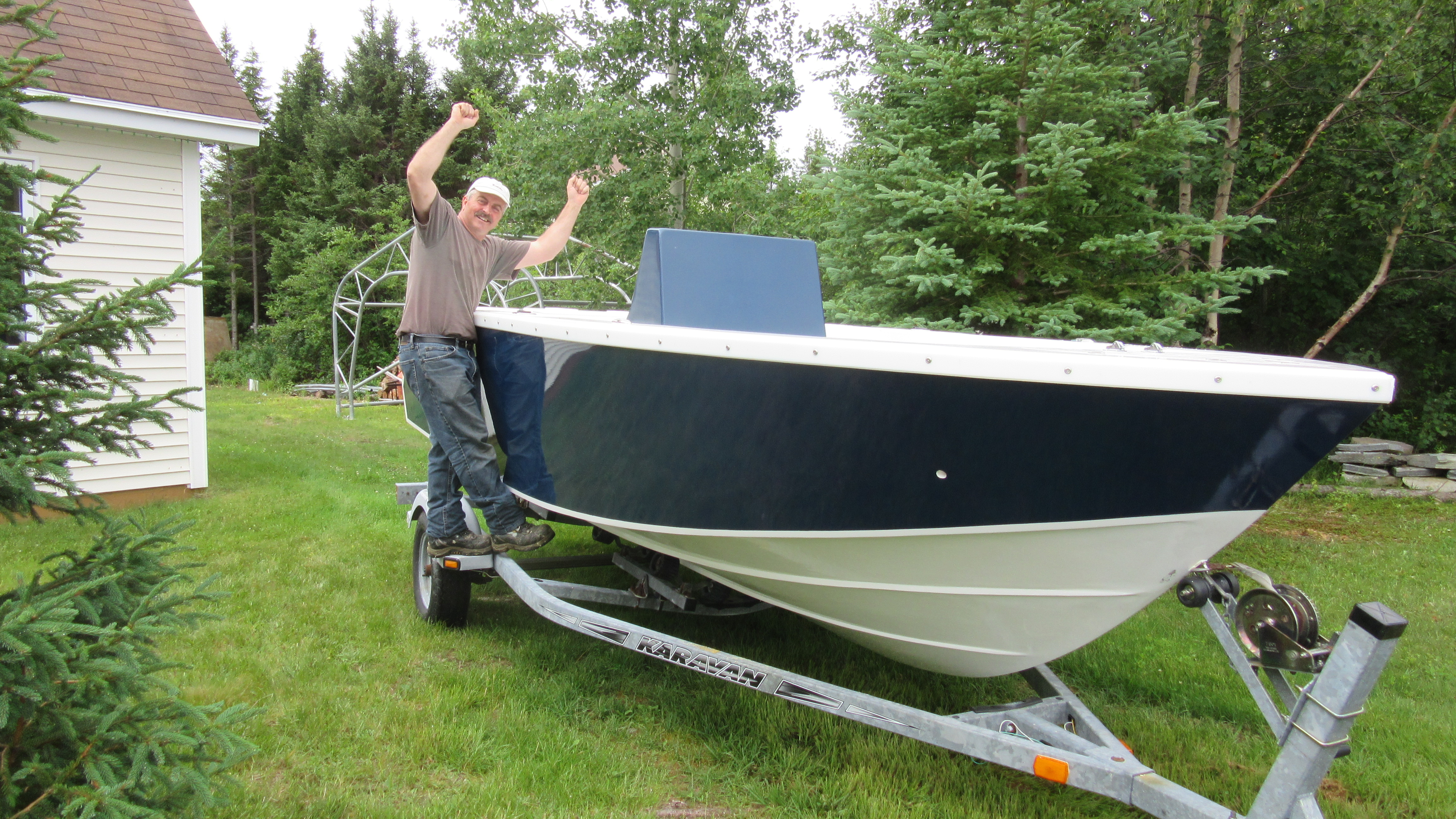 Got a few pics in the boat , the young fellow got some on his phone , he will e-mail them to me when he gets home to Montreal . He and his girlfriend are leaving tomorrow , at least they tried out the boat .